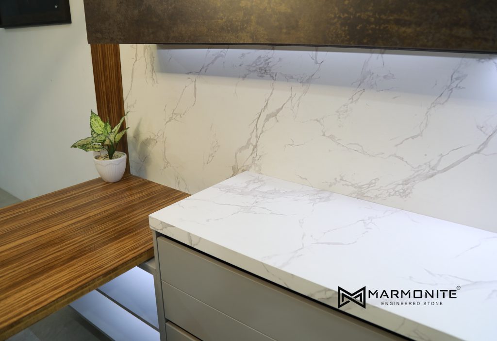 به همین ترتیب، اگرچه سنگ کوارتز را نمی توان با اره و ابزار صنعت چوب برش داد و برای برش کوارتز به دستگاه سنگ بری نیاز است، اما مارمونایت به راحتی توسط اره ها و تیغه های ام دی اف برش داده می شود و این قابلیت اجرای سنگ مارمونایت این امکان را برای ام دی اف و کابینت فراهم می کند. سازندگان و با برش های فارسی و چسباندن با چسب های مخصوصی که کارخانه با هر ورق سنگ تهیه می کند، اجرای آسان هر نوع پروژه را امکان پذیر می کند.